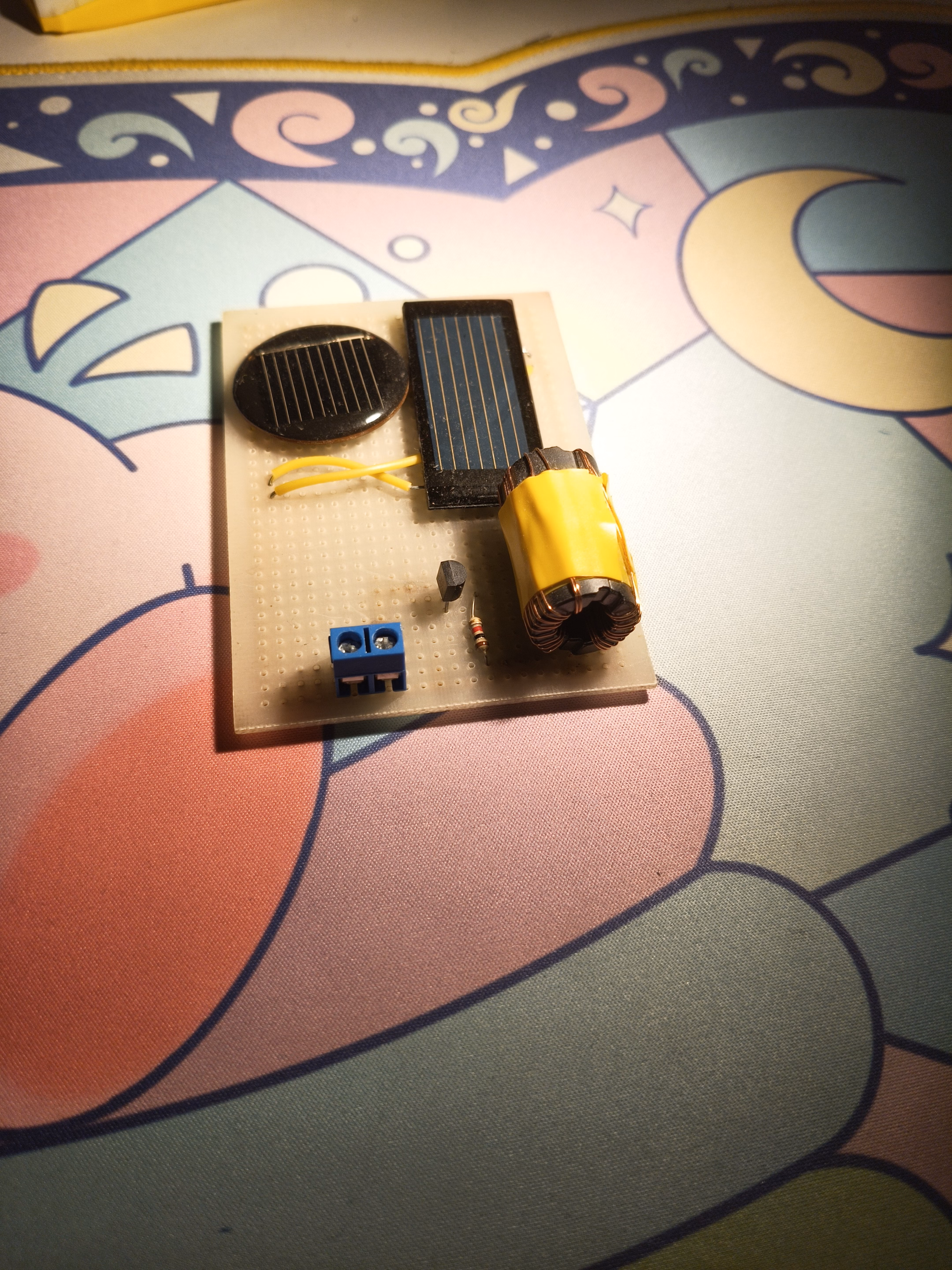 Un circuit voleur de joules avec des panneau solaire en série avec une sortie brute à 1.2V 130mA.